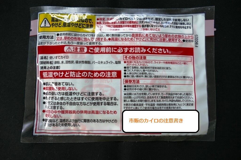★市販のカイロ(最大縦9.5cm×横13cm)に