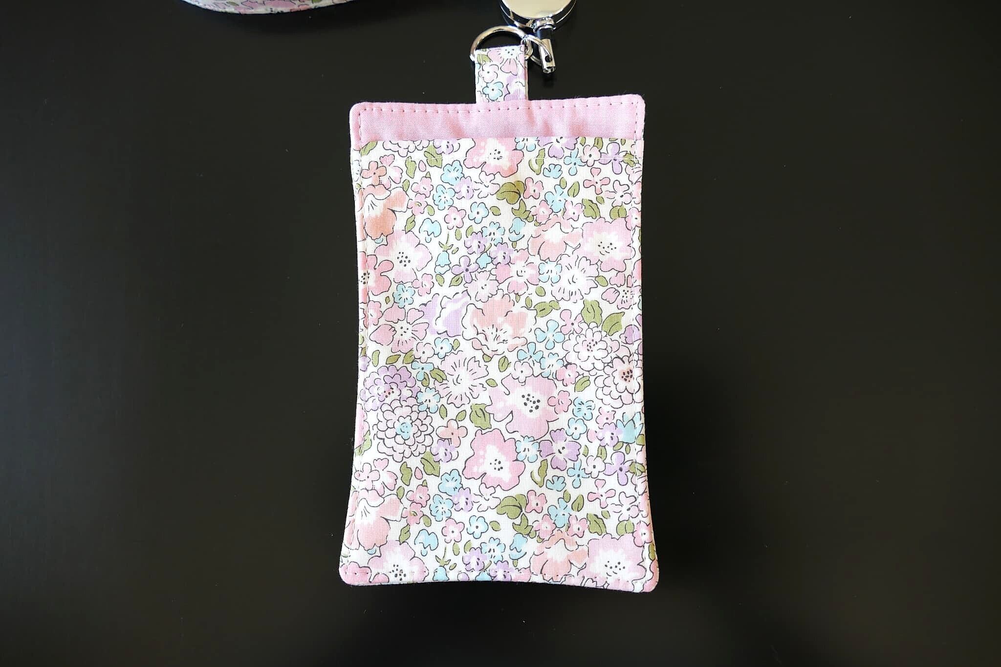 定期入れ リール付 リバティ ミッシェル ピンク 落ちない 便利 布小物 布雑貨 パスケース 窓なし